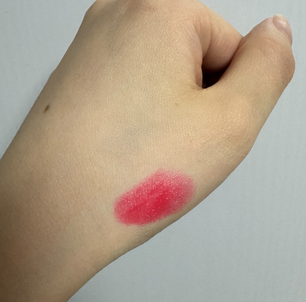 손등에 발색했을 때는 핫핑크처럼 보이는데 막상 입술에 발라보면 오렌지 느낌이 살짝 가미되어서